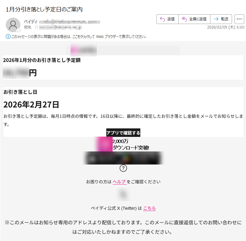 2月26日のお支払い金額