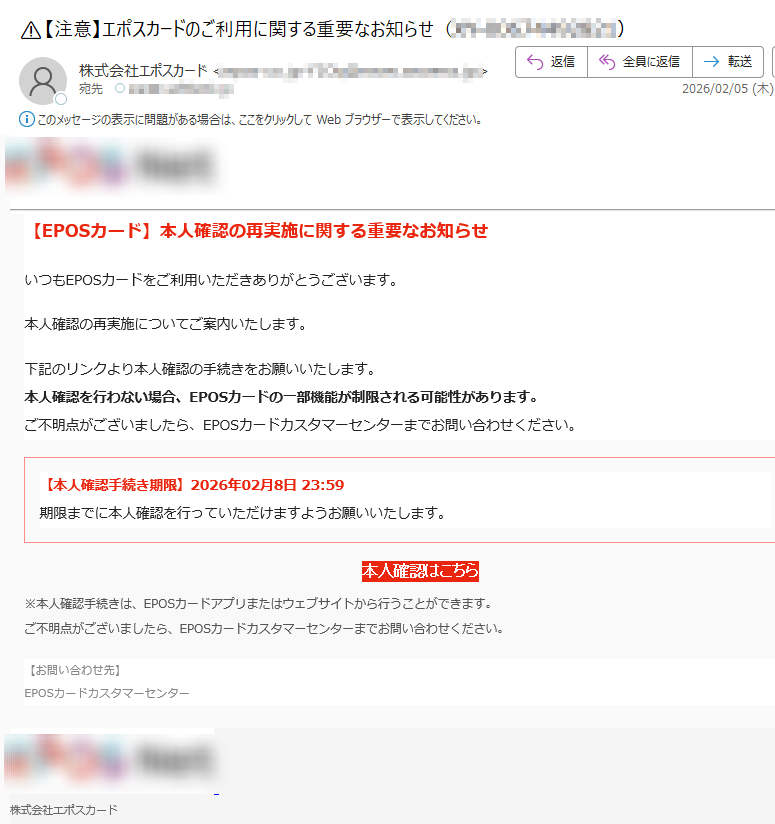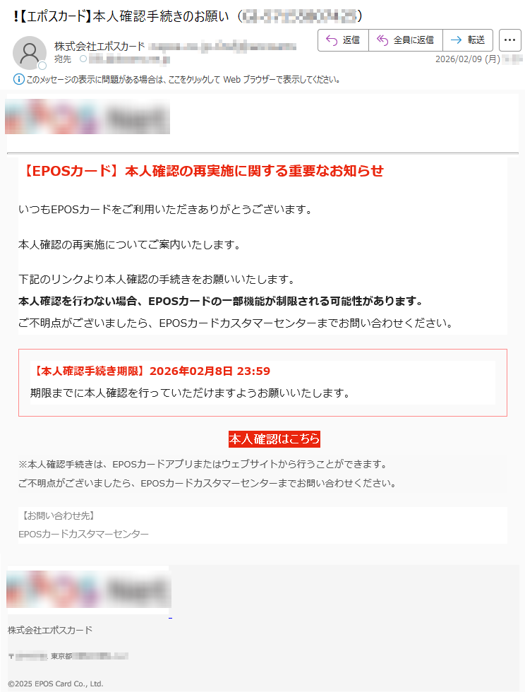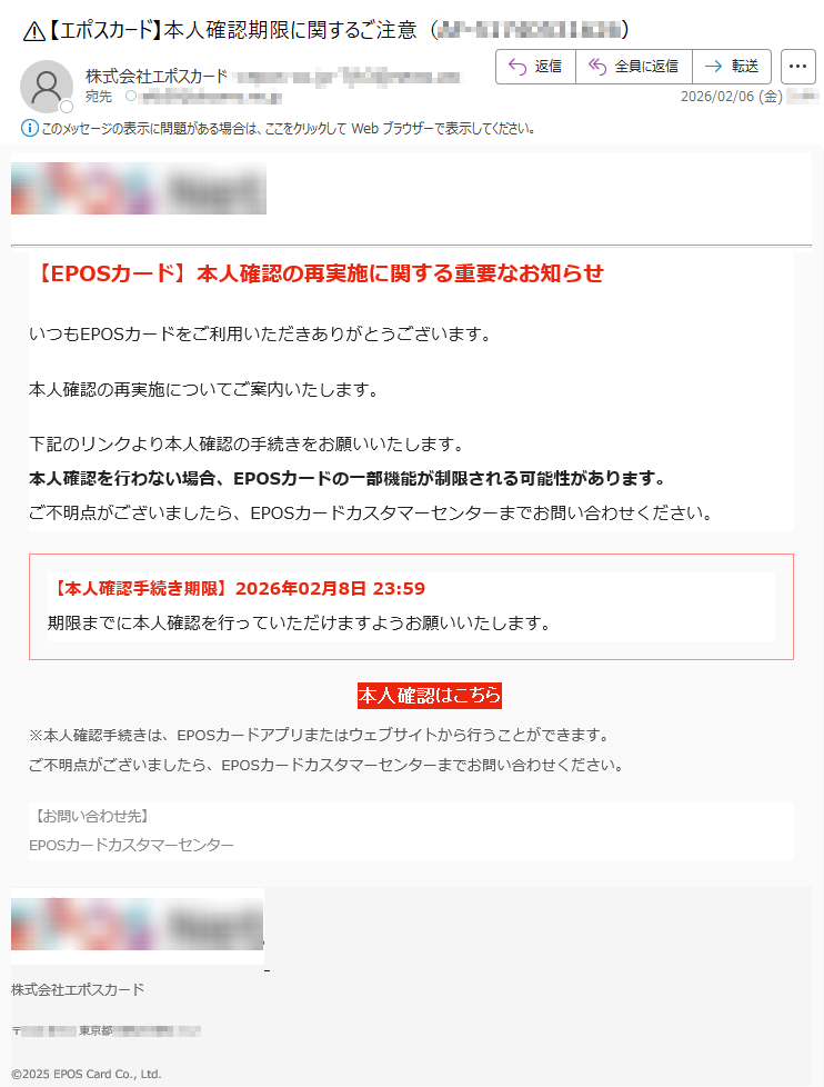 🚨【エポスカ ード】本人確認未完了のお客様への重要なお知らせ(*****)