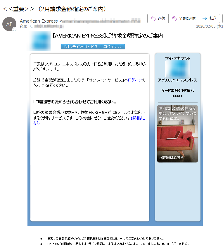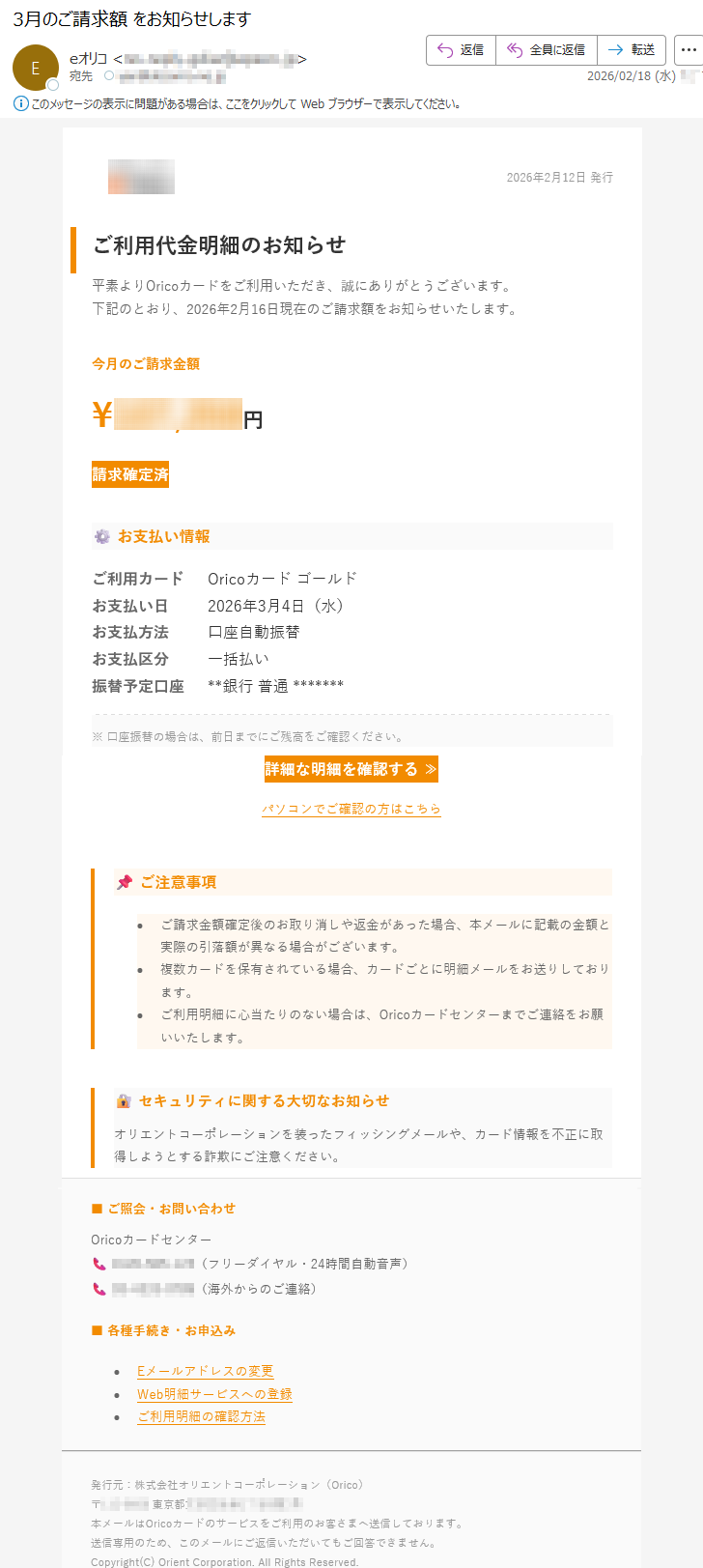 【Orico】ご利用代金明細のお知らせ