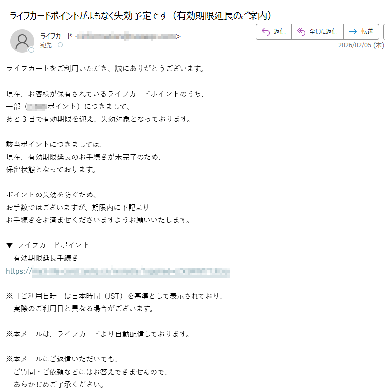 使用期限が迫っているポイントについてお知らせします。