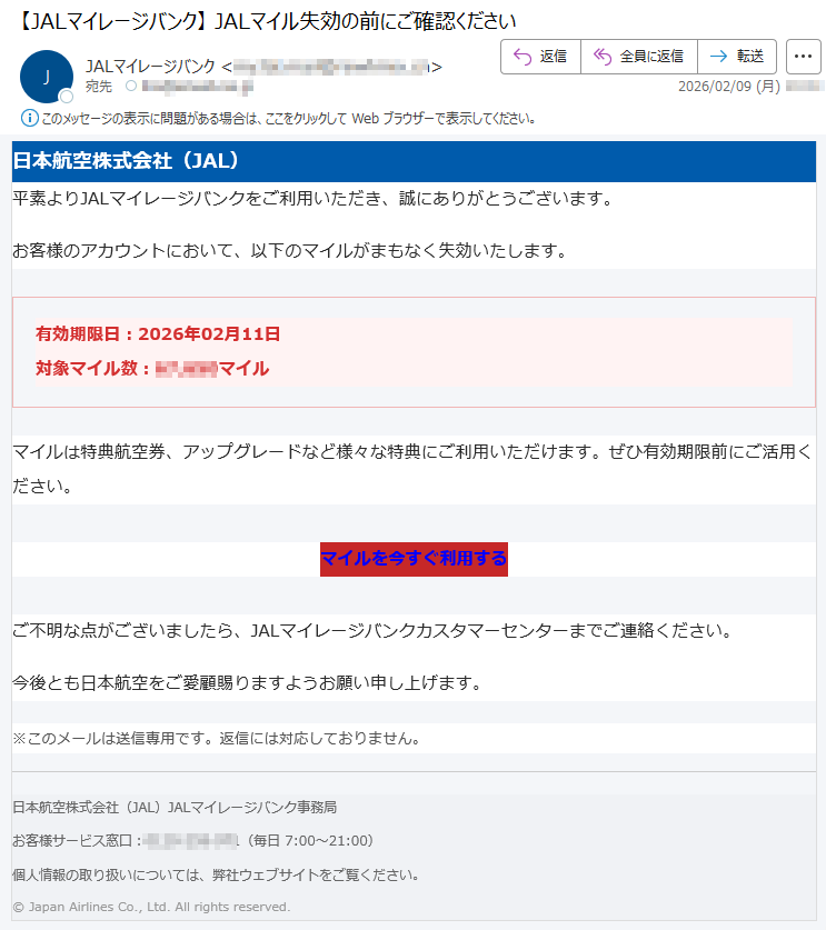 メンバーシップ・リワード ポイントがまもなく失効予定です(有効期限延長のご案内)