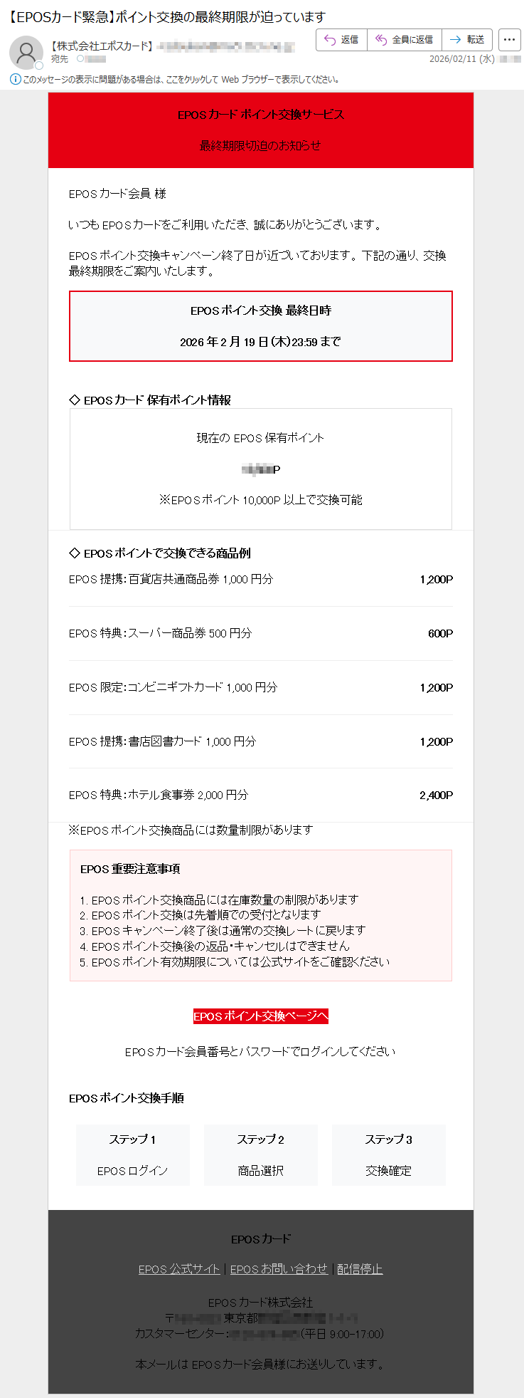 【EPOSカード緊急】ポイント交換の最終期限が迫っていますNo.*****