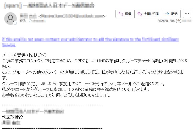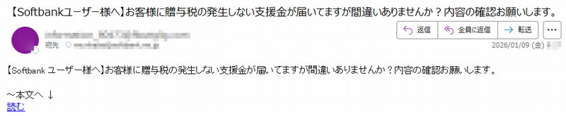 2026年1月4日現在、以下の迷惑メール・詐欺メールが送信されているので気をつけてください。