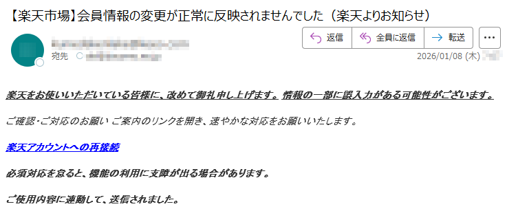 【楽天】ご登録情報の変更が完了できませんでした(ご確認ください)