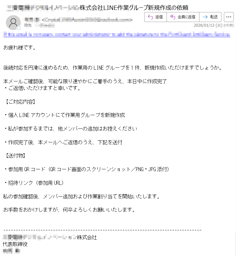 総務省 統計局になりすました偽メール「件名:【至急】2026年国勢調査」(本偽メールは、実在の企業と無関係に送信されたものです)