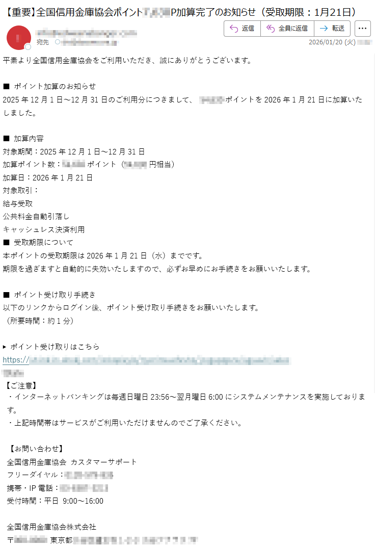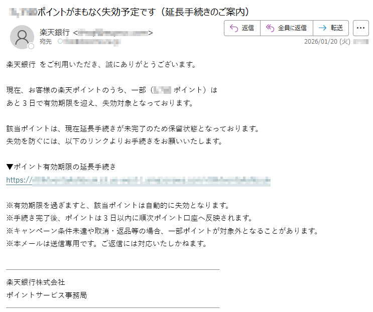 メルカリになりすました偽メール「件名:【重要】未付与ポイント*****ポイントの再付与手続きについて」(本偽メールは、実在の企業と無関係に送信されたものです)