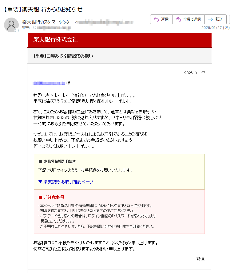 【重要】口座資産に不正取引の疑い|緊急の本人確認と凍結解除手続きを要請します