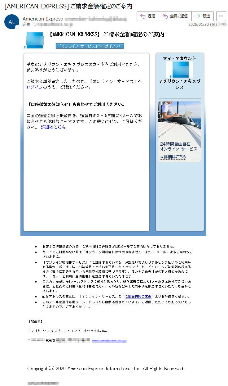 [AMERICAN EXPRESS] ご請求金額確定のご案内