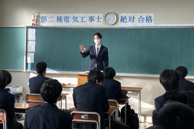 本校は「電気科」であって「電子科」や「情報技術科」ではないので、強電関係の学習が主体となる。1学期は第二種電気工事士の指導で生徒も職員も手一杯である。2学期は体育祭や文化祭、総合技術コンクールなど様々な行事がある中、下期の第一種電気工事士の補習も放課後に実施される。また、部活動に加入している生徒も50%程度おり、経済的な理由からアルバイトを行っている生徒も多い。そんな多忙な高校生にさらに工事担任者の学習をさせるのは至難の業である。放課後、職員は会議や部活指導も入ってくる。そこで着目したのが朝のHR前の補習である。本校は8時25分から職員の朝会が始まるので、補習の開始は7時40分とした。生徒も普段より1時間近く早く登校しなければならず、負担は大きい。それでも、2ヶ月程度頑張れば、一生モノの国家資格が手に入るとなれば頑張れる。9月初旬にテキストの申し込みを募ると電気科2年生の半分以上が申し込む年もある。しかしいざ朝の補習を開始すると、テキストを購入した者の7割程しか集まらない。10月の中間試験を過ぎるとこれが6~8人くらいになっている。11月初旬の文化祭を終える頃には3、4人になっている年もあるが、そこまで頑張った生徒は11月末や12月に受験し、合格を勝ち取っている。